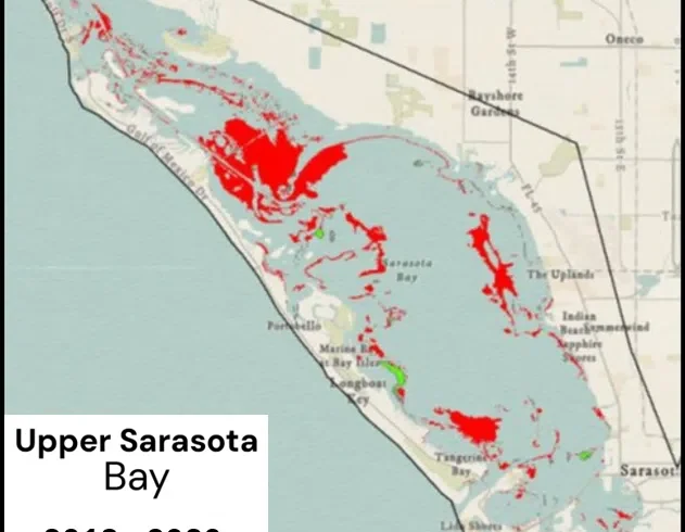 map of Sarasota Bay Seagrass Change 2022 2024 Upper Bay