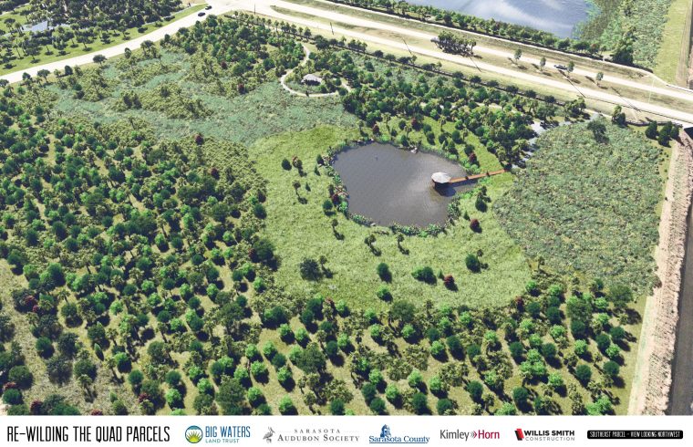 Phase 1 of the Quad Parcels re-wilding project begins with the 11-acre southeastern parcel. Sarasota Audubon and Big Waters note this parcel will have the highest number of trees planted, and when complete, will provide more wooded areas for wildlife to forage and nest, along with a pollinator meadow.