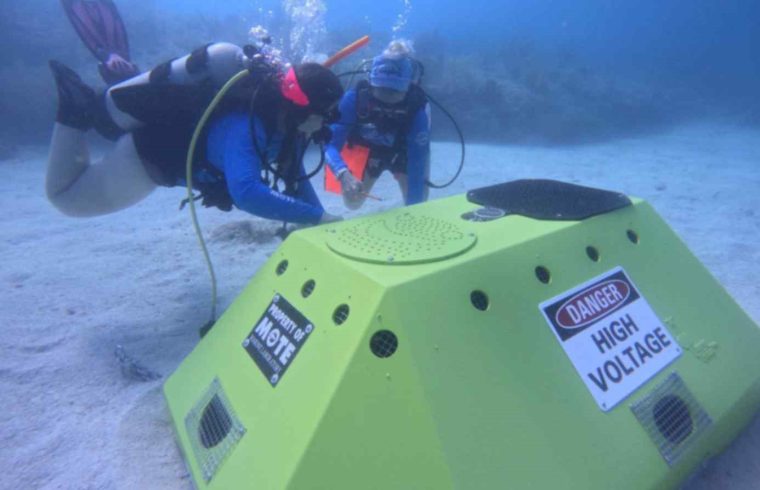 Mote Marine Laboratory, in a project funded by the Southeast Coastal Ocean Observing Regional Association (SECOORA), successfully deployed a SeapHOx sensor, an instrument that monitors pH and dissolved oxygen (parameters measured for evaluation of ocean and coastal acidification), at Looe Key in the Florida Keys on Tuesday, June 11. Mote’s goal is to significantly increase and improve ocean acidification monitoring with the SeapHOx deployment. In leading this groundbreaking initiative, Mote aims to fill critical gaps in ocean acidification data, enhancing scientific understanding and protection of Florida’s coral reefs.