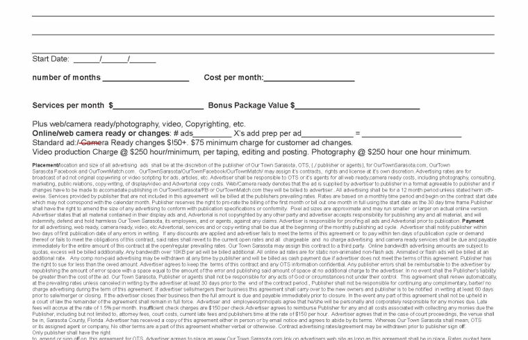 UncategorizedNovember 11, 2023 Advertising Agreement OTS Advertising contract 01_16 Related posts Higher Density Proposed for Siesta…Our Town’s Best Bets ProductsSarasota Chalk Festival 2024Power Boat RacesProtected: Stats:Our Town Sarasota, Facebook.com/ourtownsarasotaRingling: Lifelong Learning CoursesHearing on Siesta High RisesVeteran Art ExhibitOur Town Sarasota brings it…SMH Participates in National Study